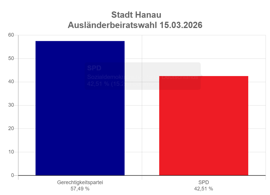 Die letzte Wahl des Ausländerbeirates in Hanau fand am 15.03.2026 erstmals gemeinsam mit den allgemeinen Kommunalwahlen statt.